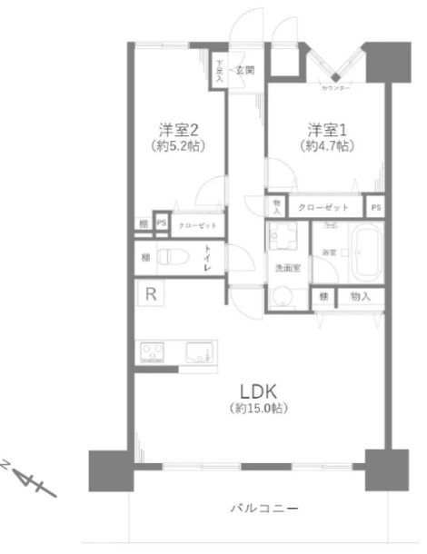 | 間取内容 | LDK15.0畳 洋室5.2畳 洋室4.7畳 | ||